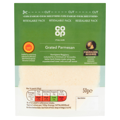 Parmigiano Reggiano, matured for a minimum of 18 months. Italian hard cheese made using raw, unpasteurised cows' milk and calf rennet