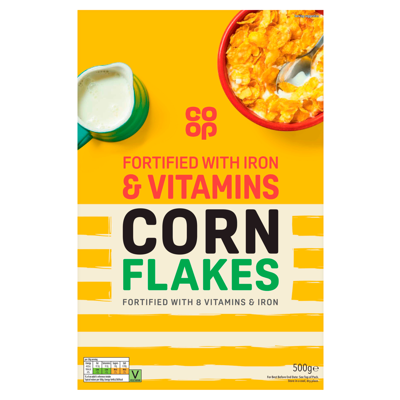 Golden toasted flakes of corn with 8 added vitamins plus iron, including folic acid