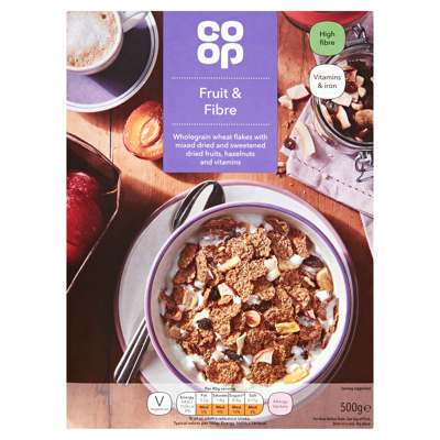 Wholegrain wheat flakes with mixed dried and sweetened dried fruits, hazelnuts and vitamins. With 9 added vitamins including folic acid plus iron