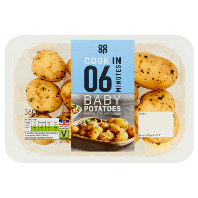 Baby potatoes coated in rapeseed oil and herbs, with butter