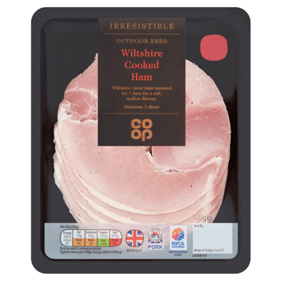 Wiltshire cured formed ham, made from selected cuts of British pork legs, matured for at least seven days then cooked.