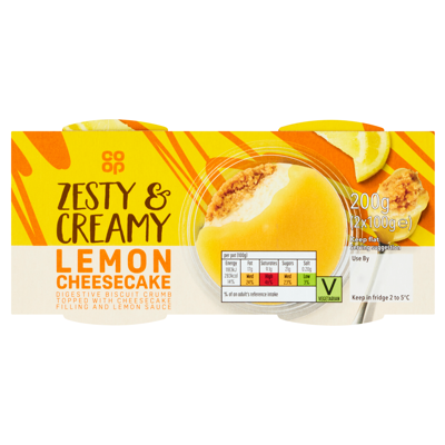 Digestive biscuit crumb with a fromage frais cheesecake layer topped with lemon sauce x2.