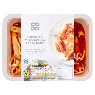 Penne pasta in a tomato sauce, finished with mozzarella and mature Cheddar cheese